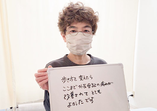 外反母趾は昔からで、半ばあきらめていましたが、痛みも出てきたので改善の指導をしていただき、歩き方を意識することで角度も改善され、目からウロコでした。